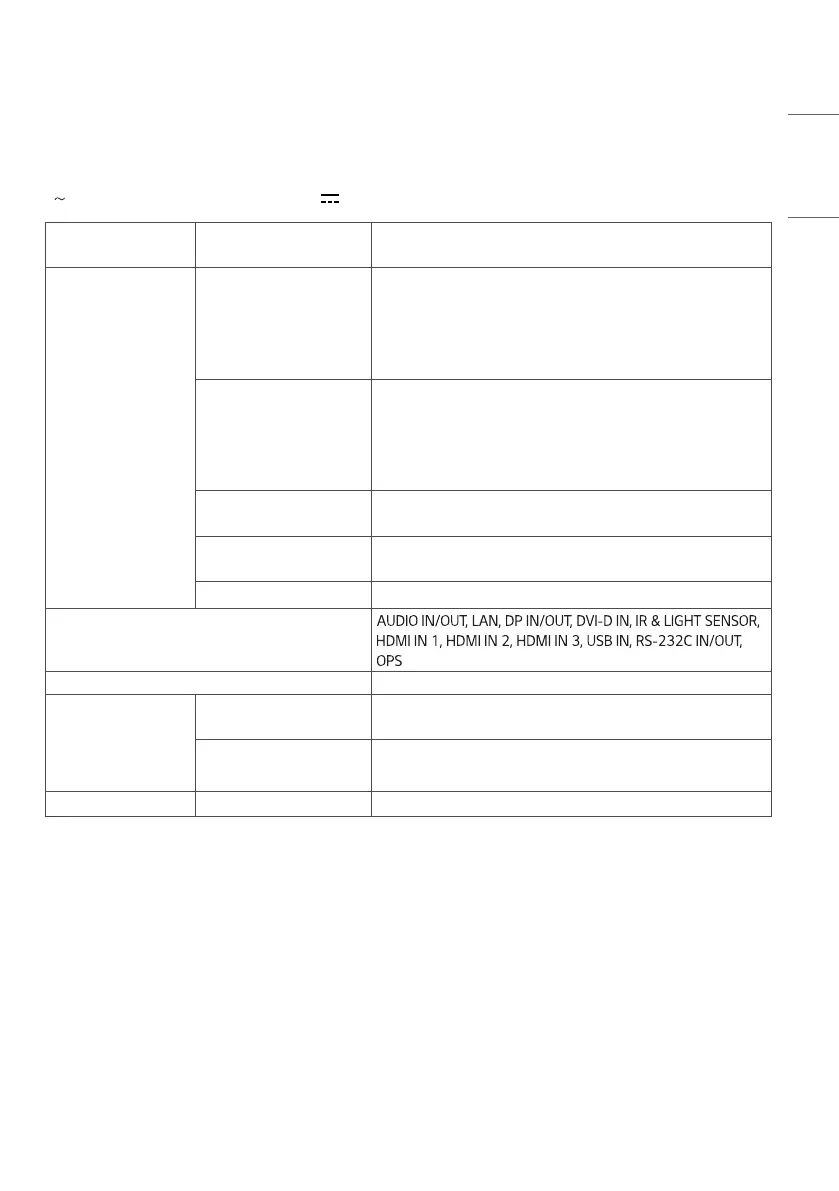 Horizontal frequency DVI-D/ HDMI/ DisplayPort/ OPS (PC): 30 kHz to 83 kHz