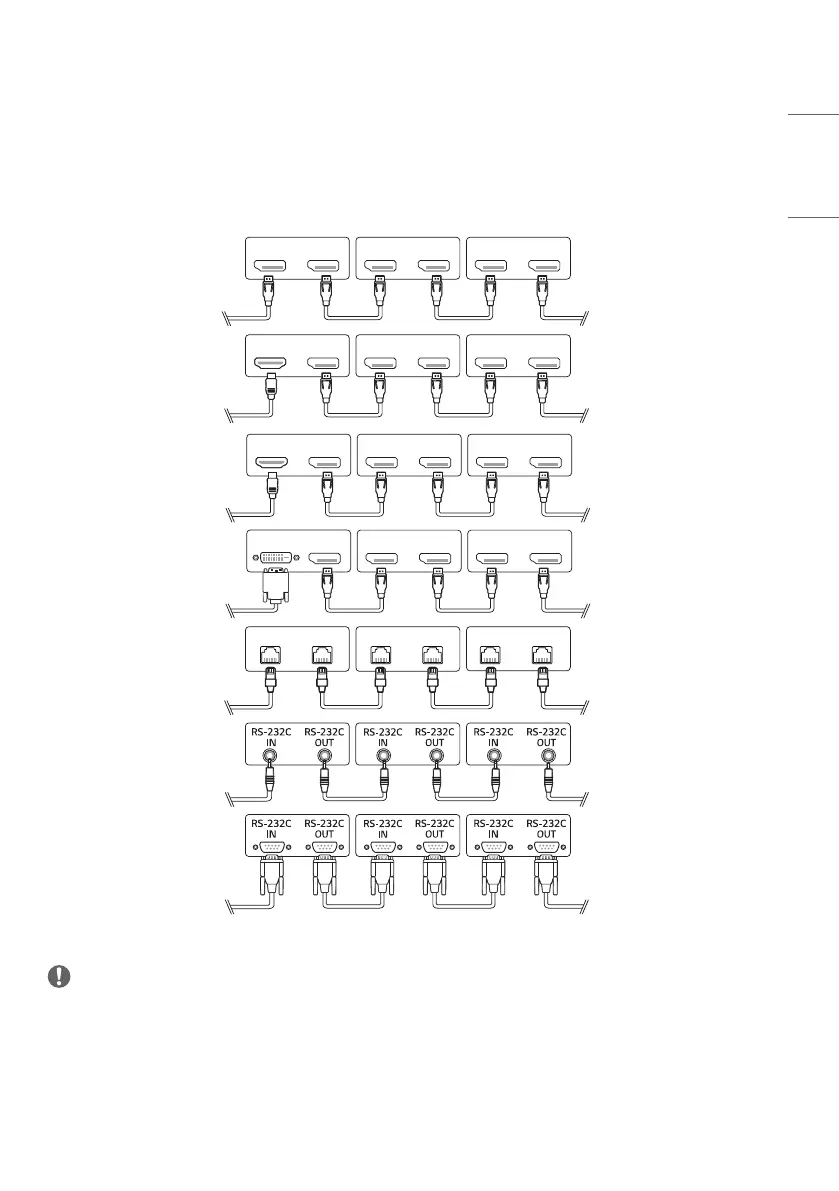To use different products connected to each other, connect one end of the signal input cable (DP Cable) to the DP Out