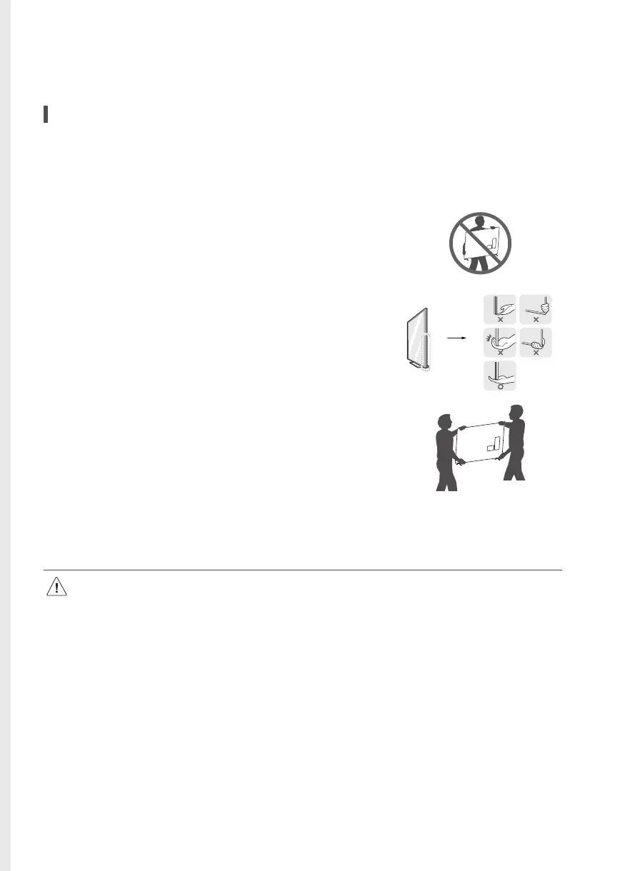 When moving or lifting the TV, read the following to prevent the TV from being scratched or damaged and for safe transportation regardless of its