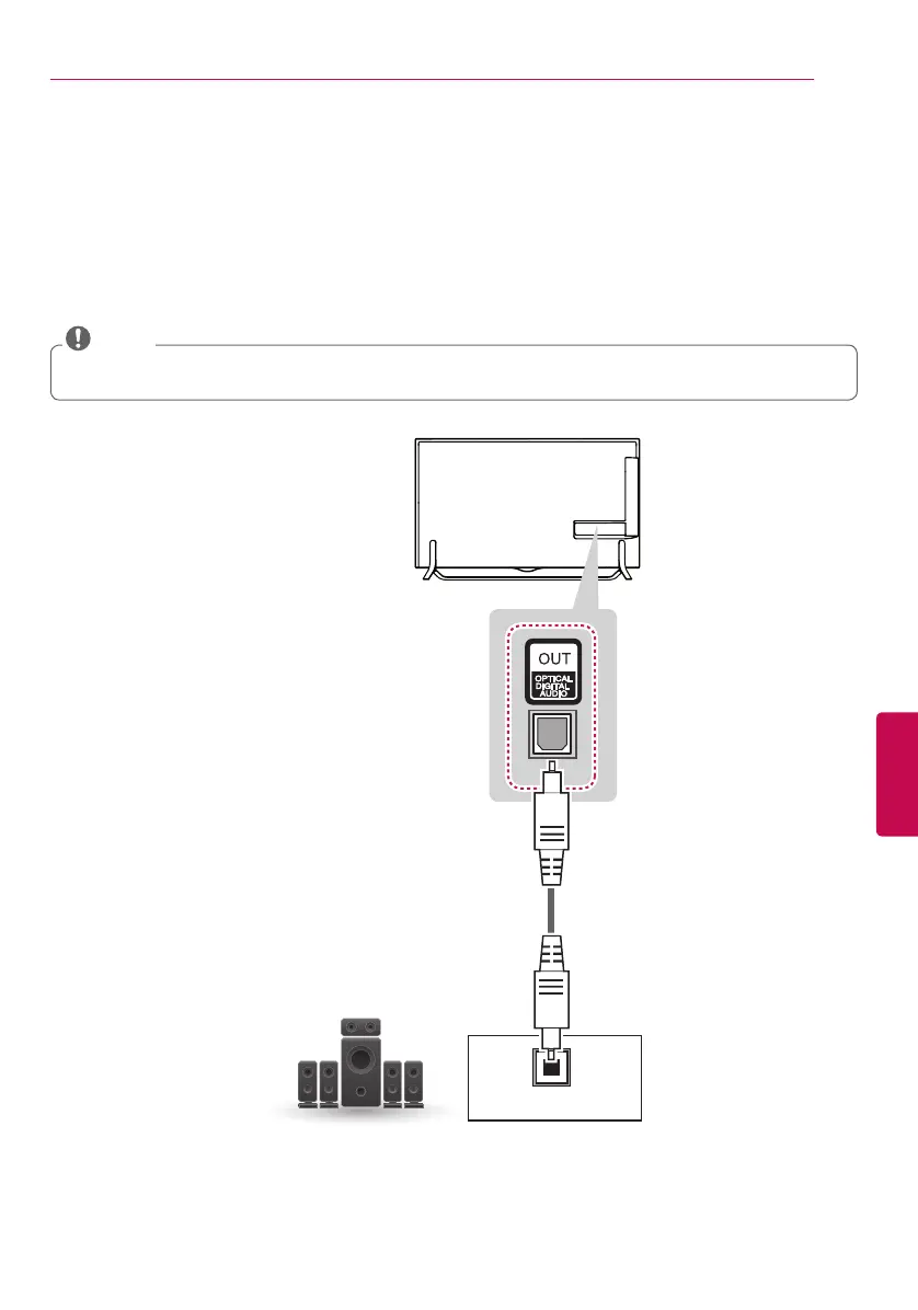 Conecte el dispositivo externo y el televisor con el cable de audio óptico tal como se muestra en la