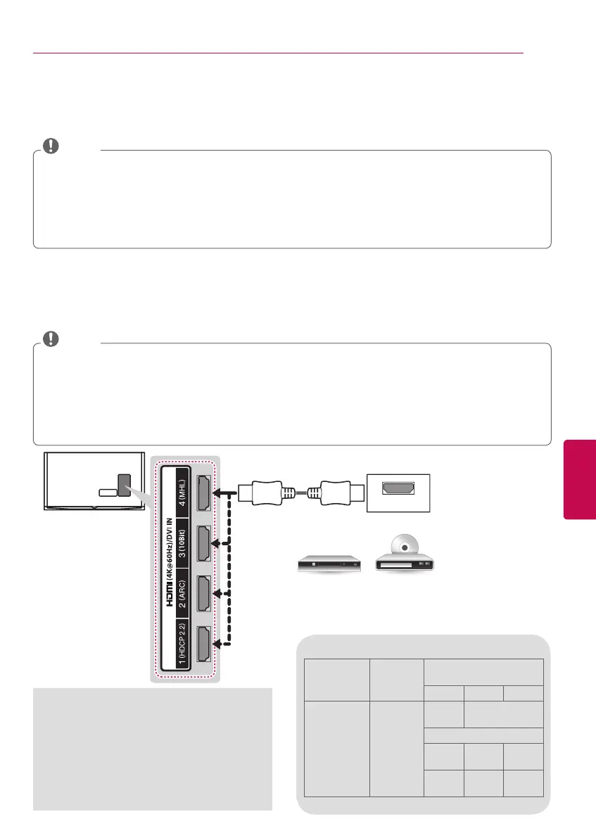 • Las especificaciones de HDMI pueden ser diferentes para cada puerto de entrada, así que debe
