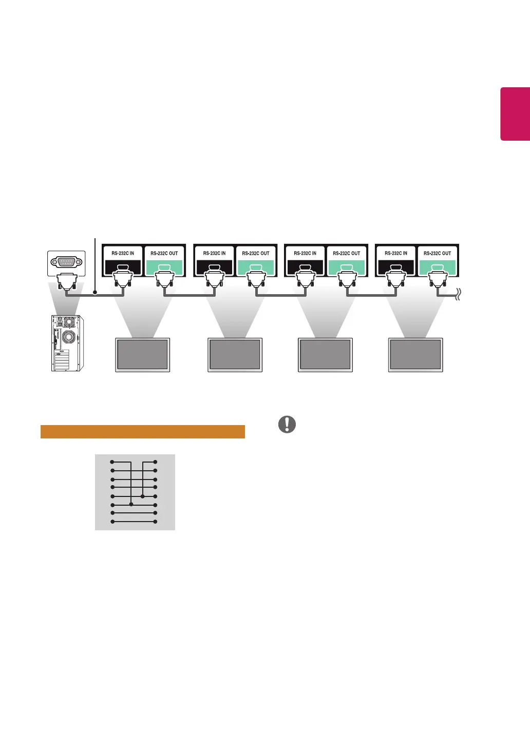 The RS-232C protocol is used for communication between the PC and product. You can turn the product on/