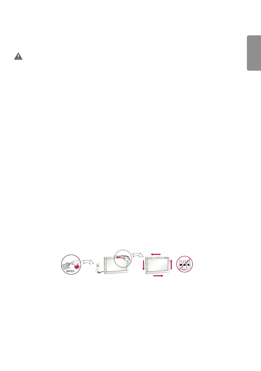 clean with a wet cloth or spray water or other liquids directly onto the product. An electric shock may occur. (Do not