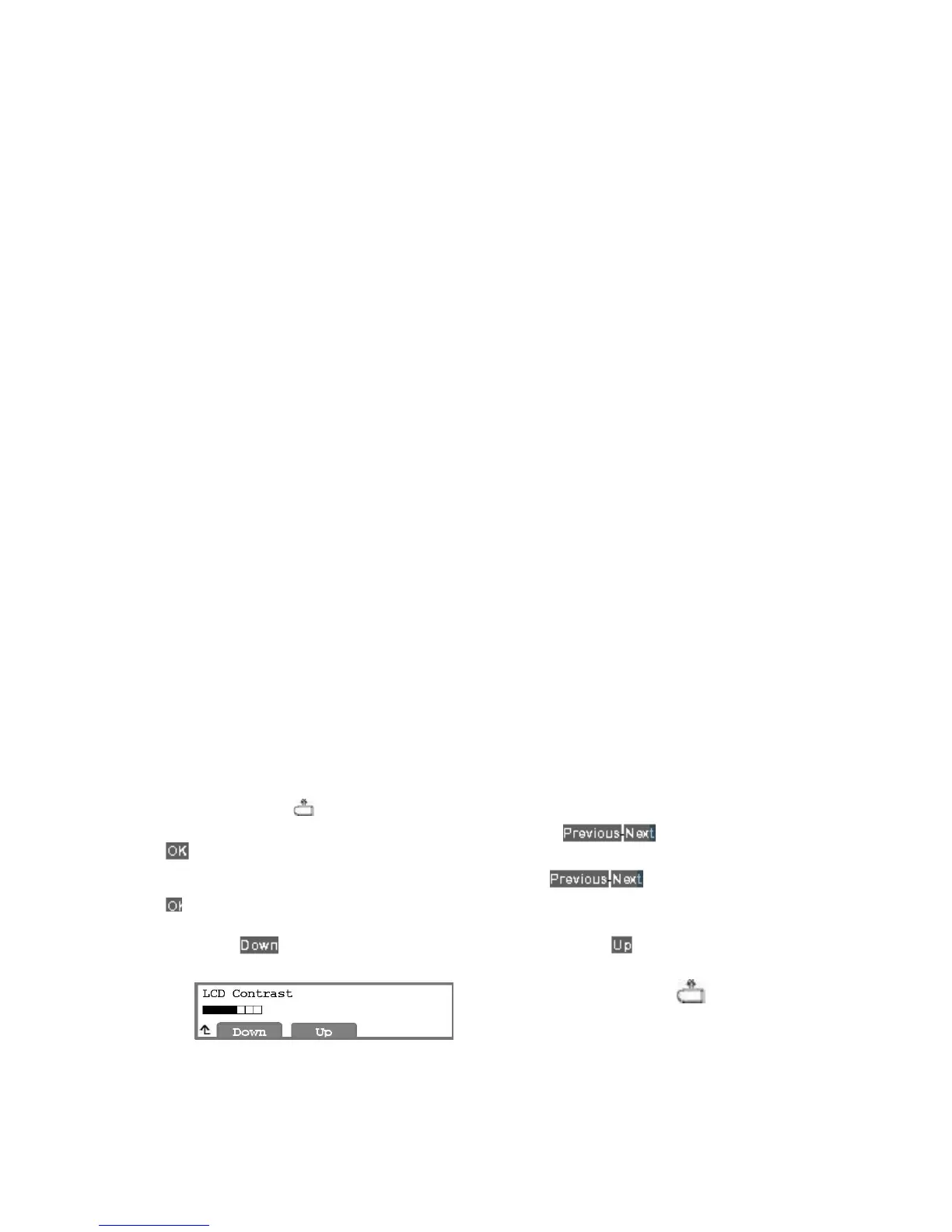 o Dial 1, or move the cursor to 1.LCD Contrast using the softkeys and press the OK