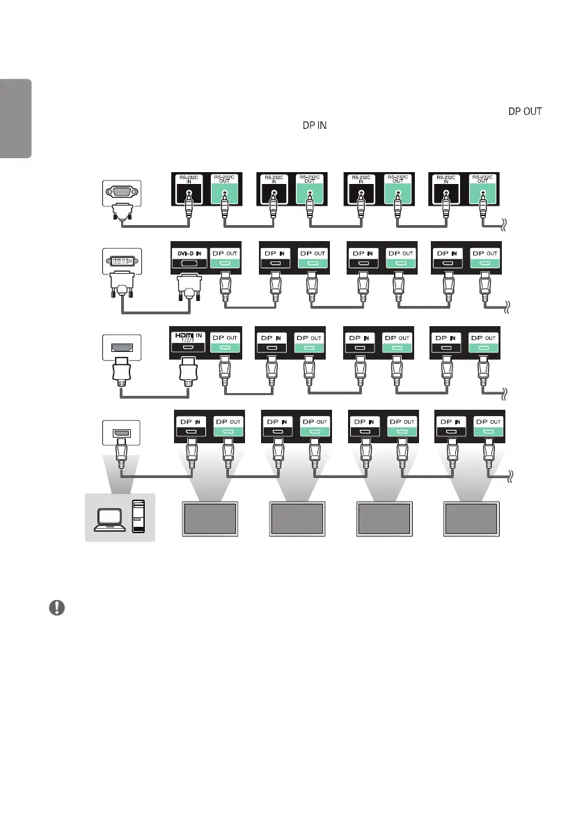 To use multiple monitors connected to each other, connect the end of the signal input cable (DP cable) to the