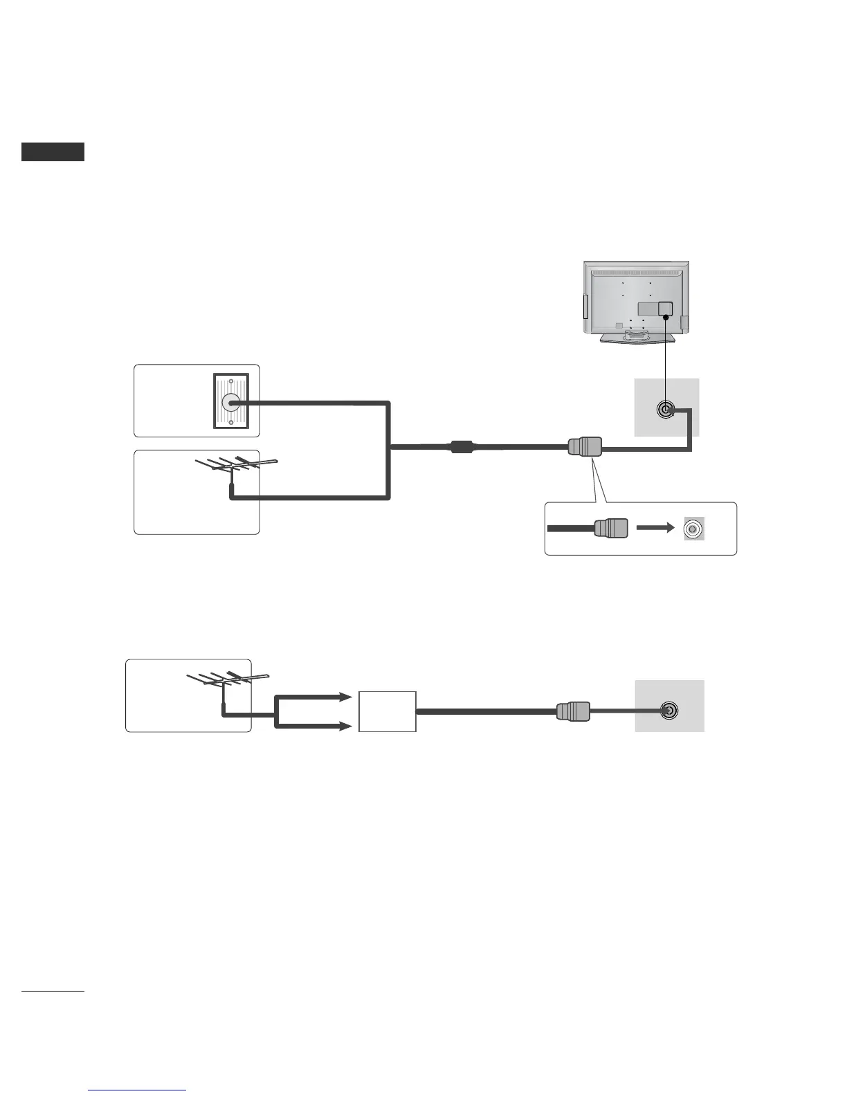 If signal needs to be split for two TVs,use an antenna signal splitter for connection.