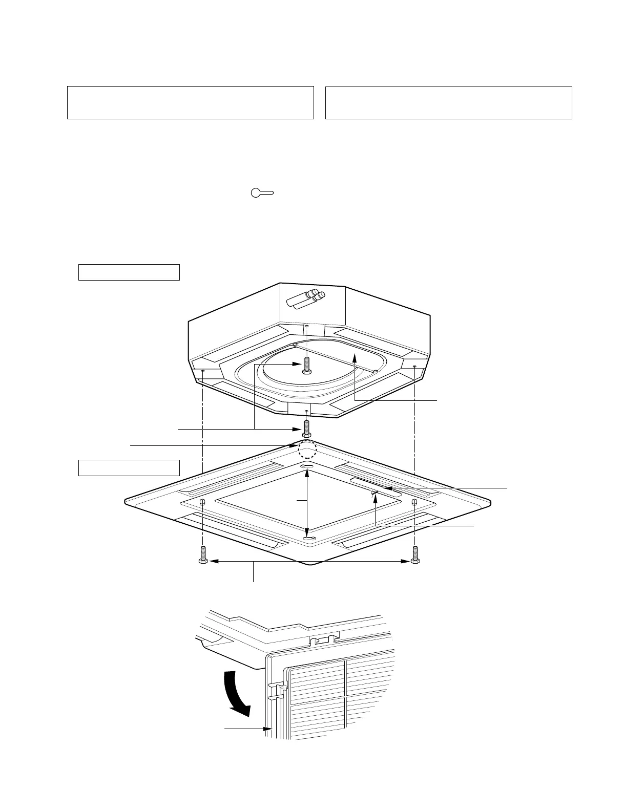 1. Temporarily fix two decorative panel fixing screws (hexagon M5 screw) on the unit body. (Tighten by amount