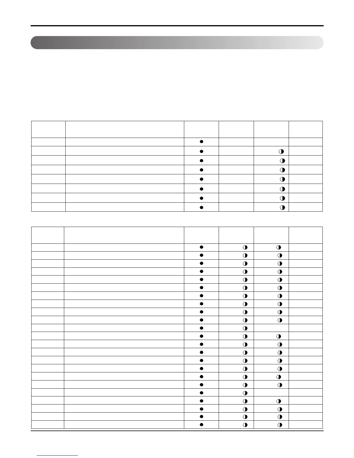 • Error mark is ON/OFF for the operation LED of evaporator body in the same manner as the following table.