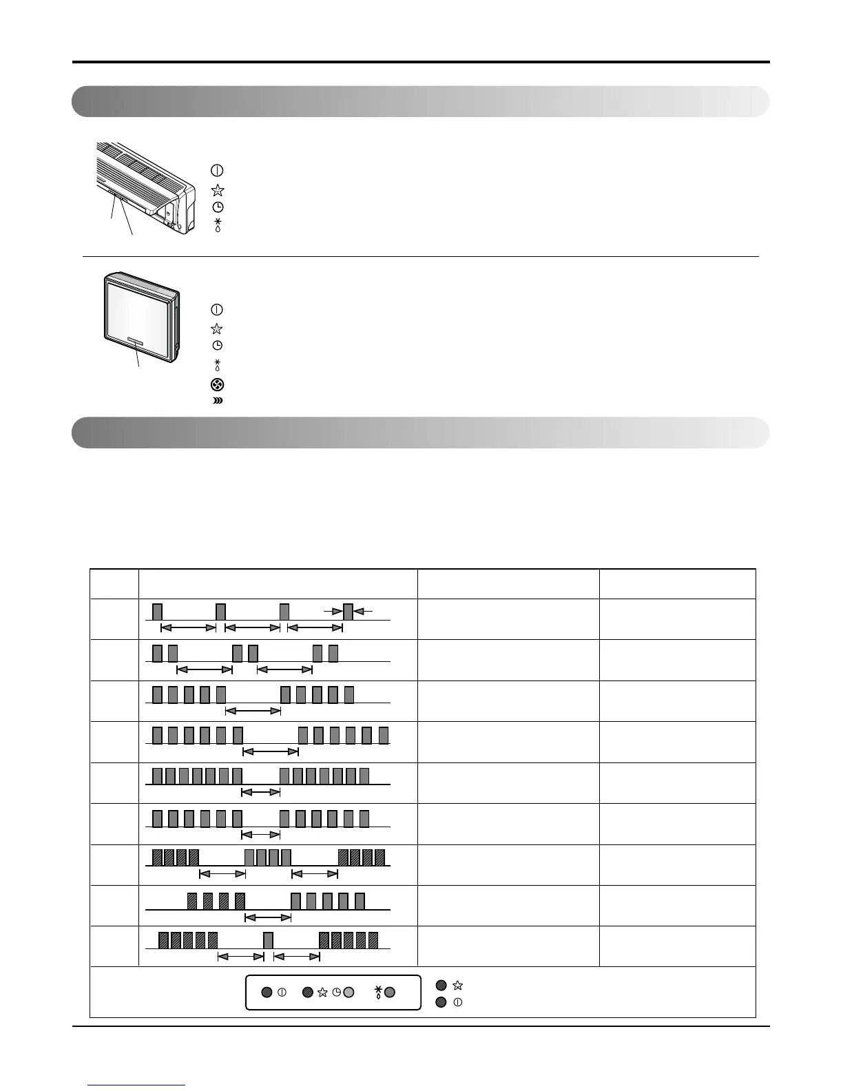 • Error mark is ON/OFF for the operation LED of evaporator body in the same manner as the following table.