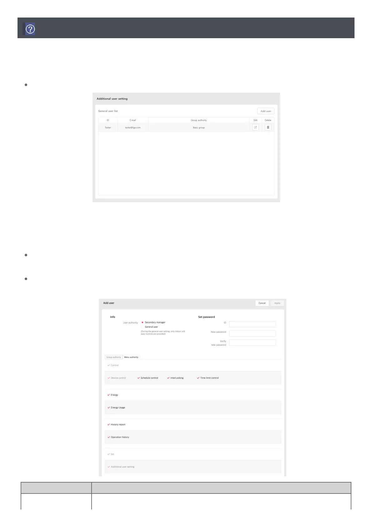 Youcanmanagetheadditionaluserlistwhenyouloginwithmanagerauthority.