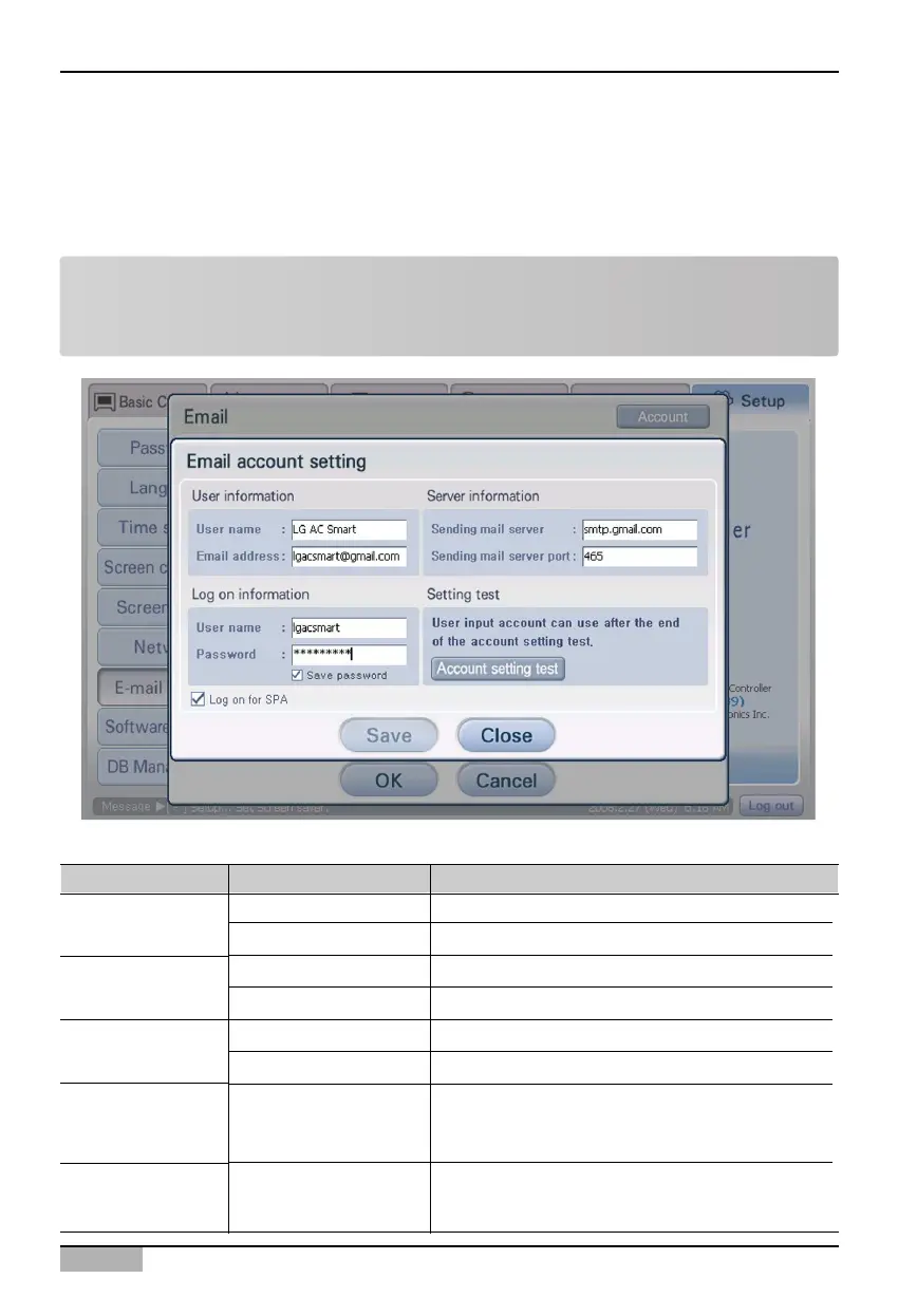 account setting’ screen is displayed for setting the account to send the e-mail. If the administrator