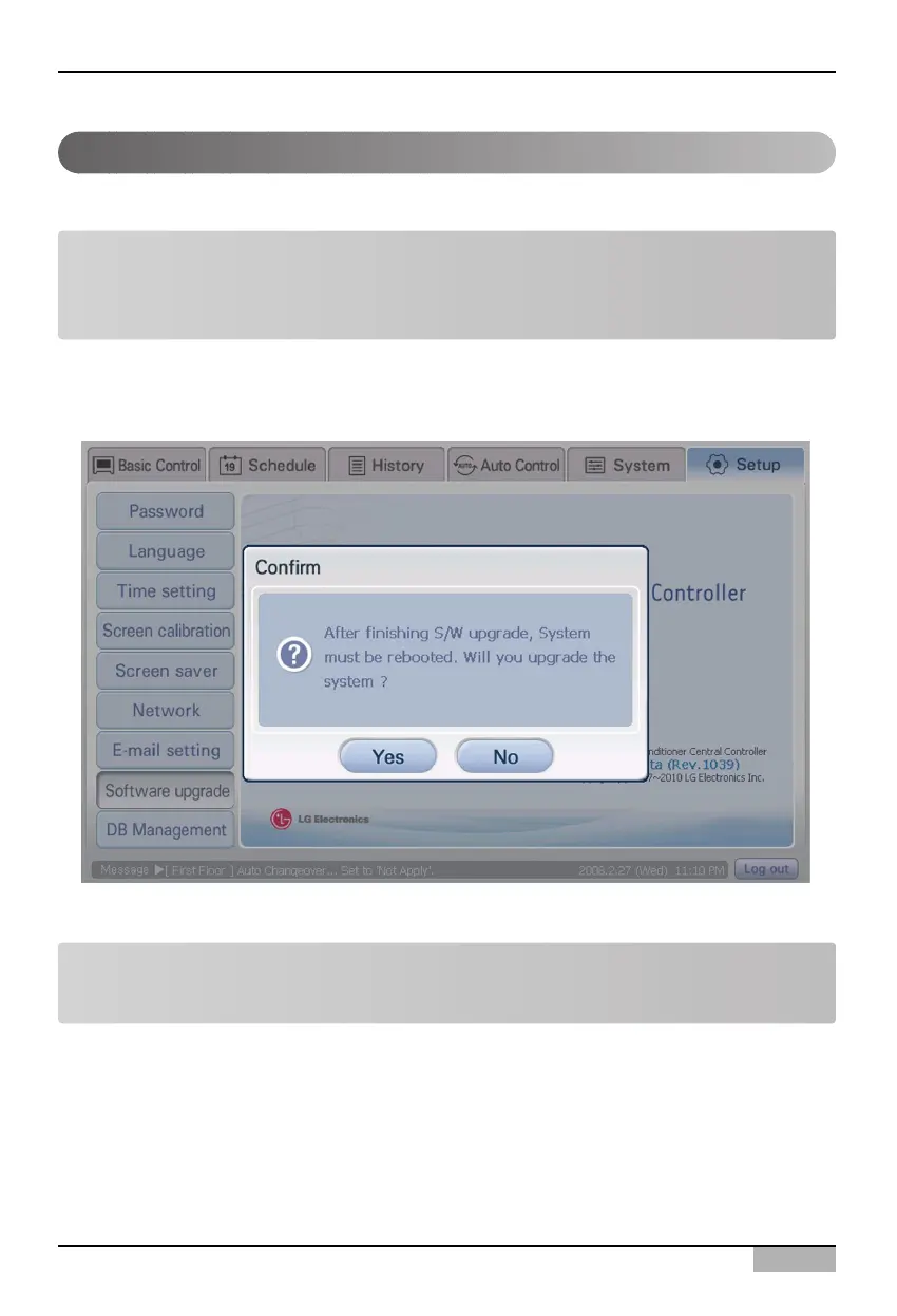 After the procedure to re-confirm the S/W upgrade, the software upgrade is automatically executed.