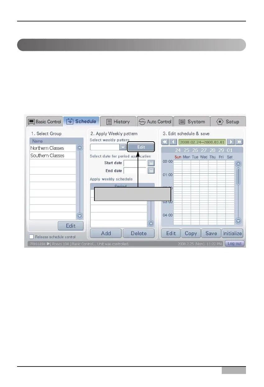 following schedule screen is displayed. To create a schedule pattern, click on the [Edit] button