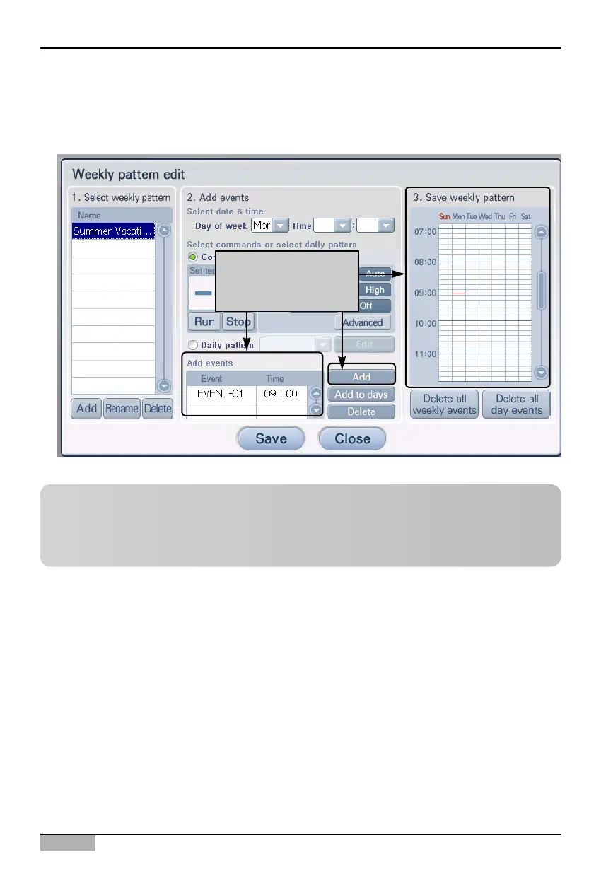 displayed in 'Add event' and '3. Save weekly pattern'. If you have more schedule planned, repeat