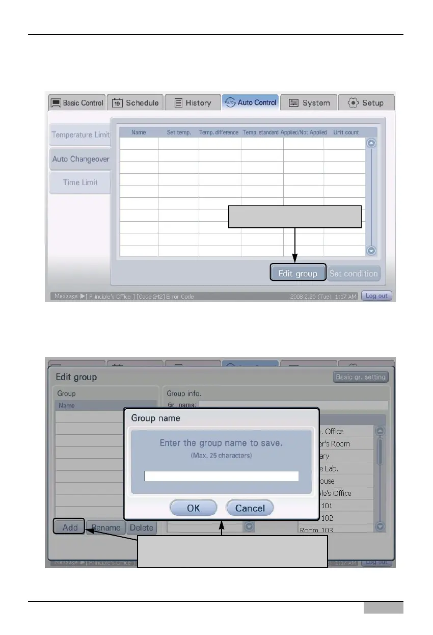 2. When the 'Auto change over operation' screen appears, click on the [Edit group] button to create a