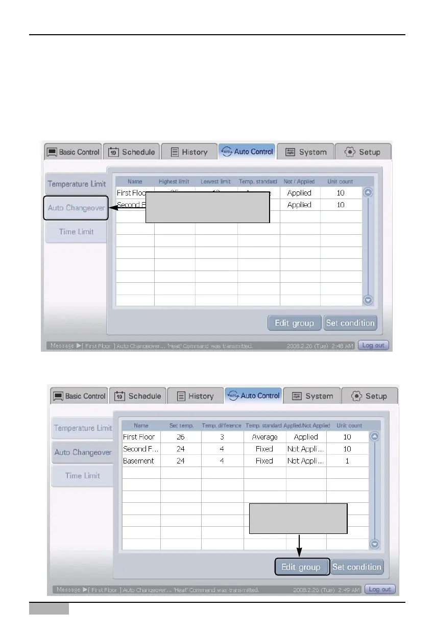 the following auto control screen is displayed. Click on 'Auto change over operation' from the sub