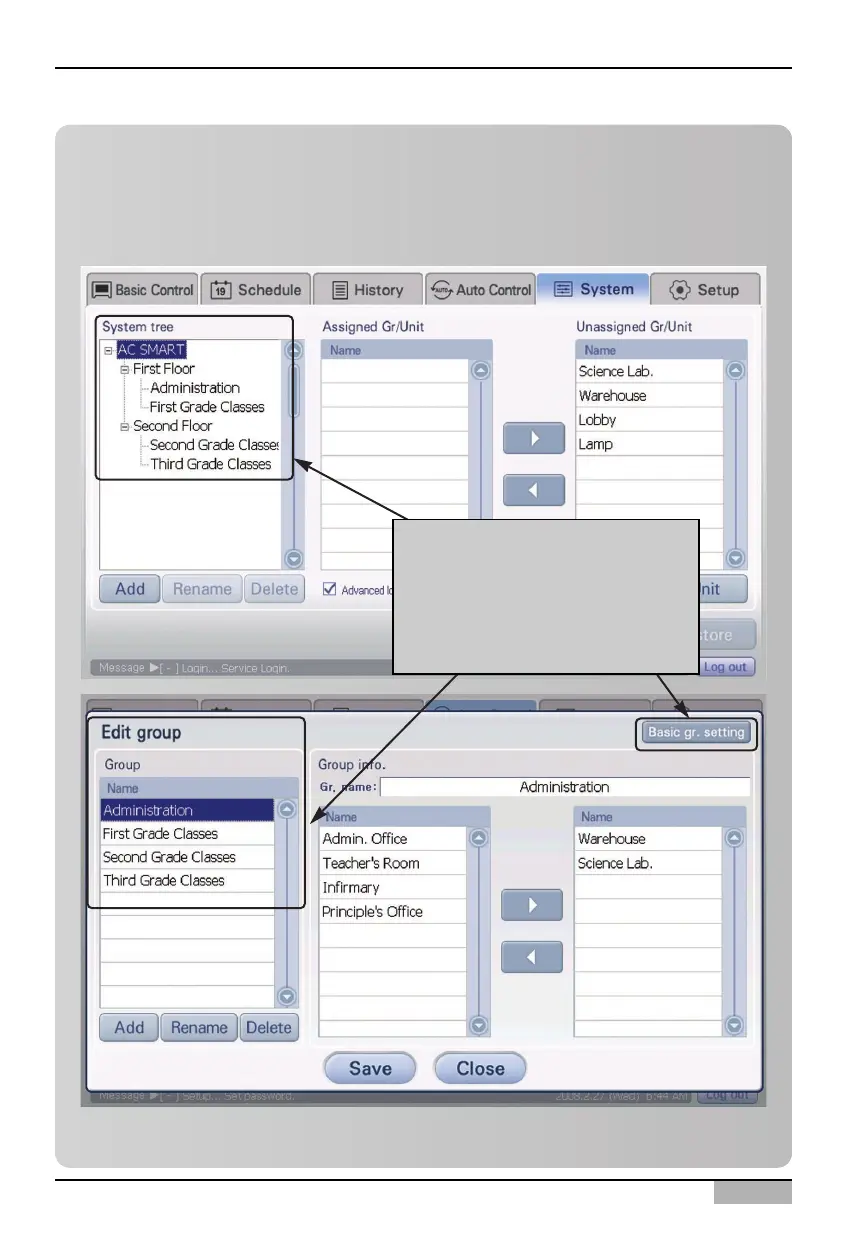 the default control groups set for controlling and monitoring at ‘System setting’ menu is created as