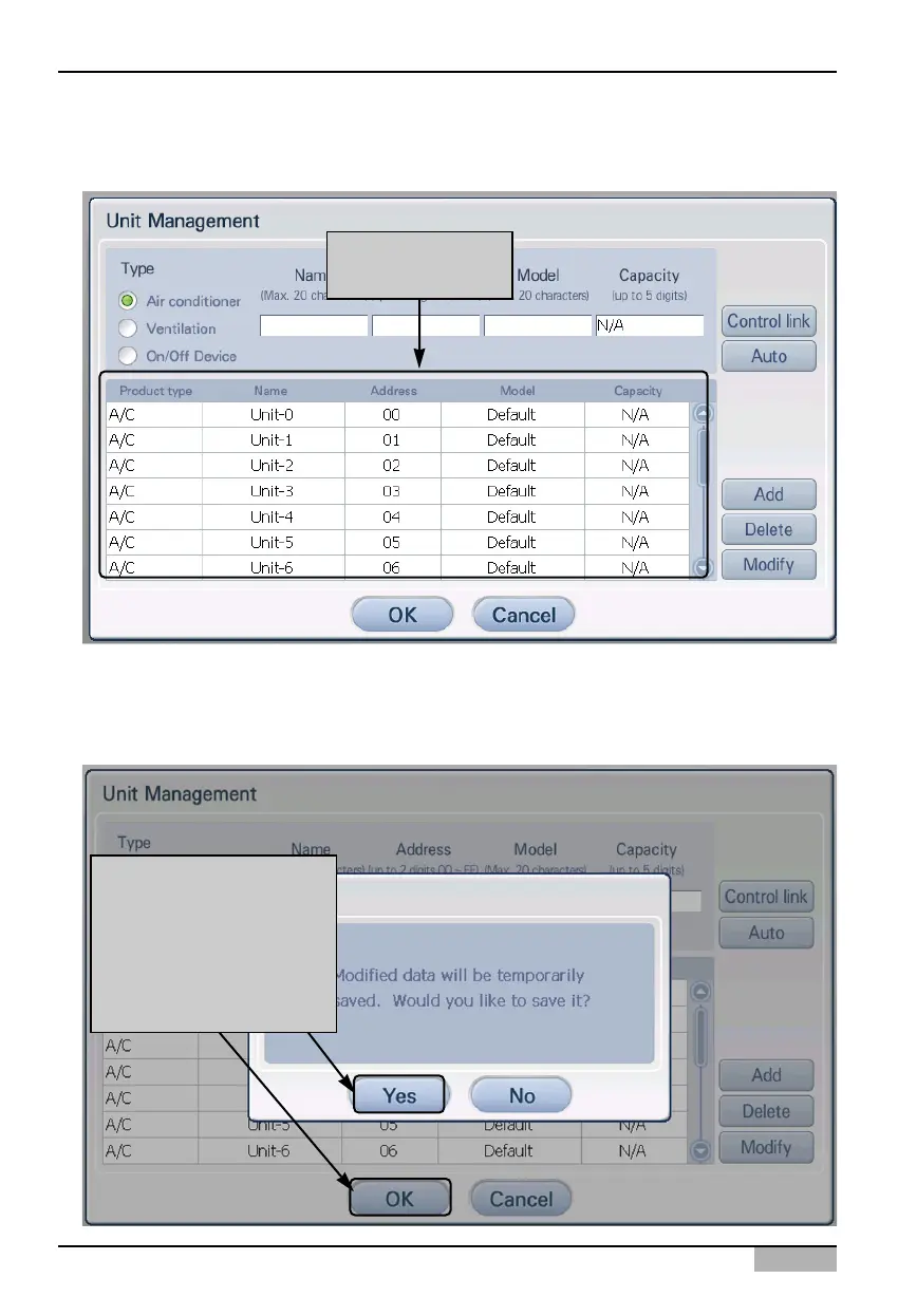 3. Save the searched unit. When you click on the [OK] button, an ‘Information’ screen to check