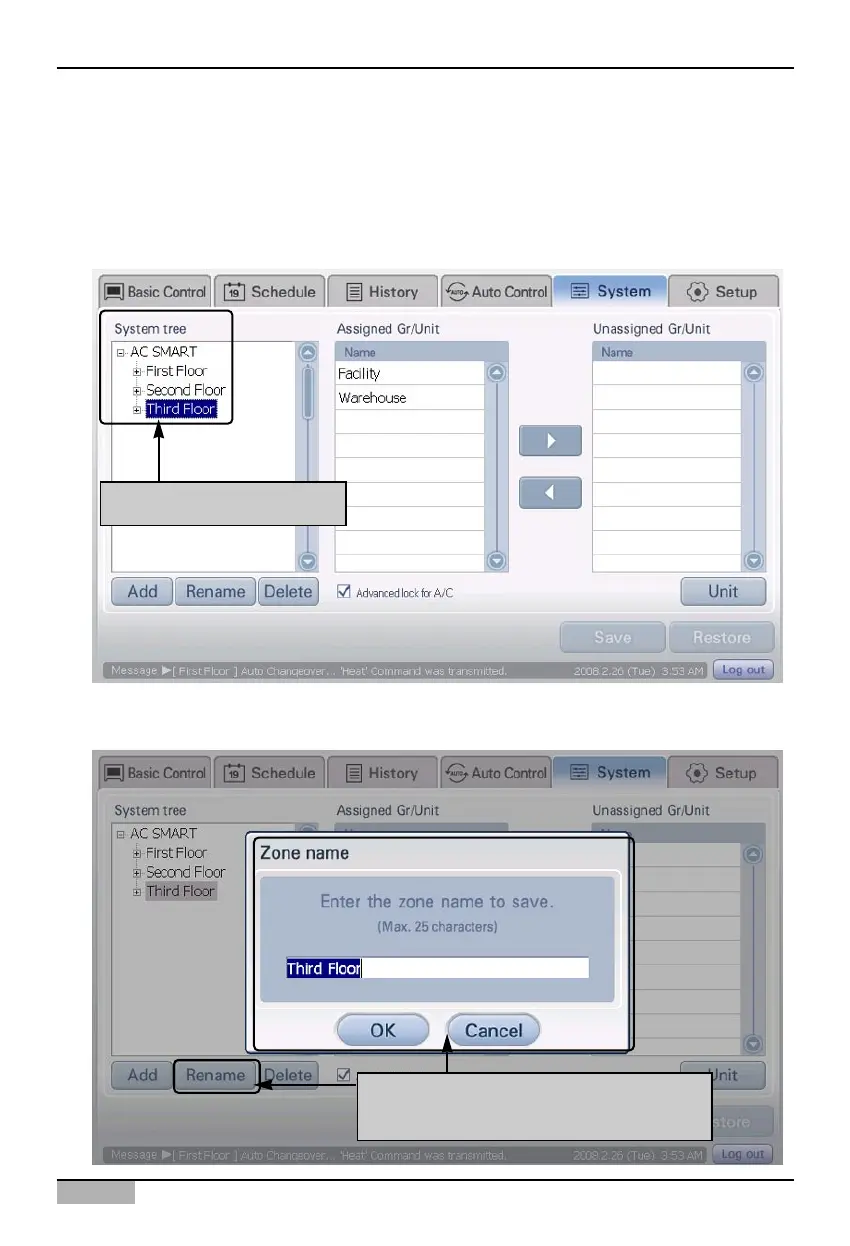 following screen is displayed. Select the zone to rename from 'System tree'.