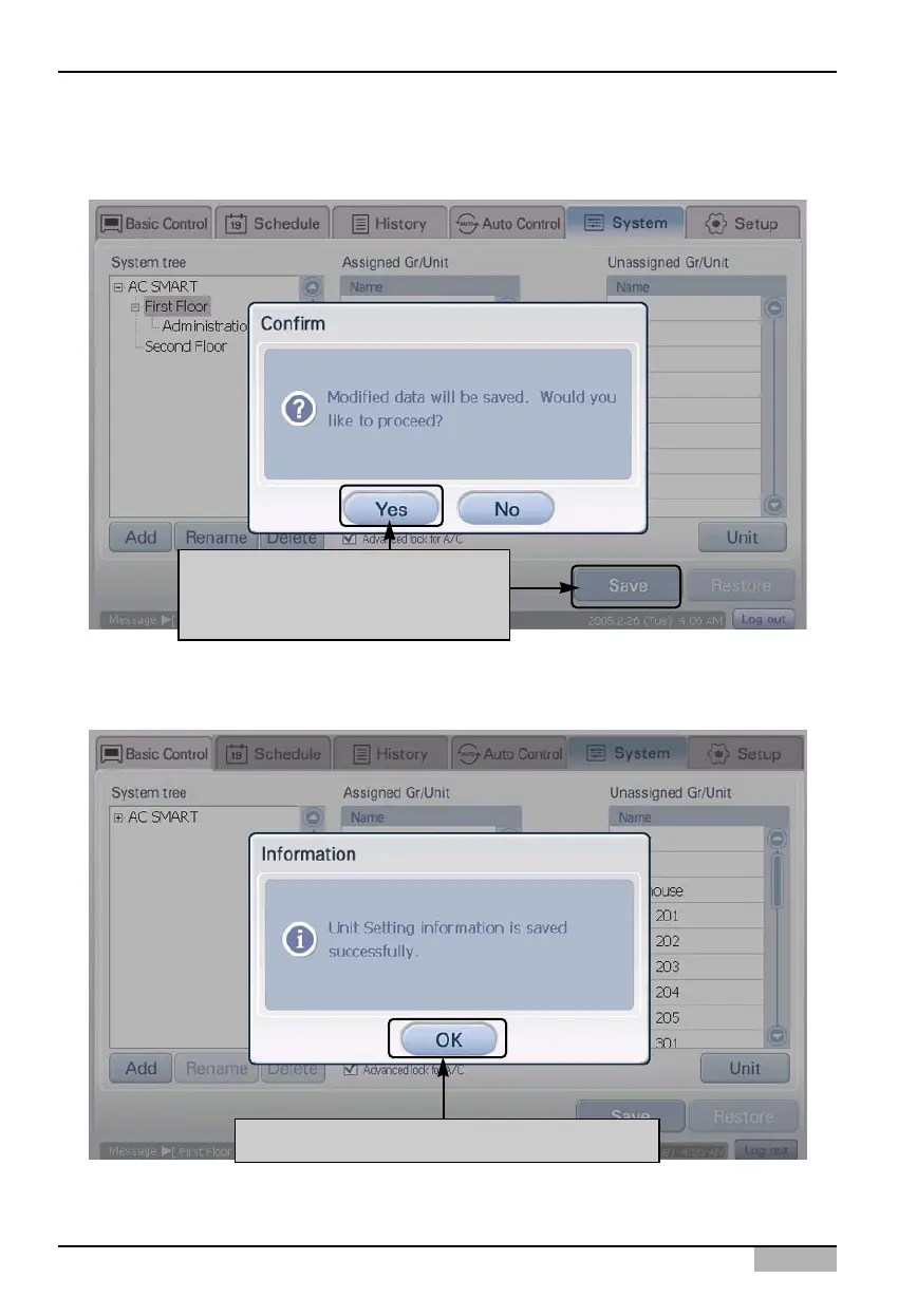 5. Click on the [Save] button to save the setting. Message confirming to save will be displayed on