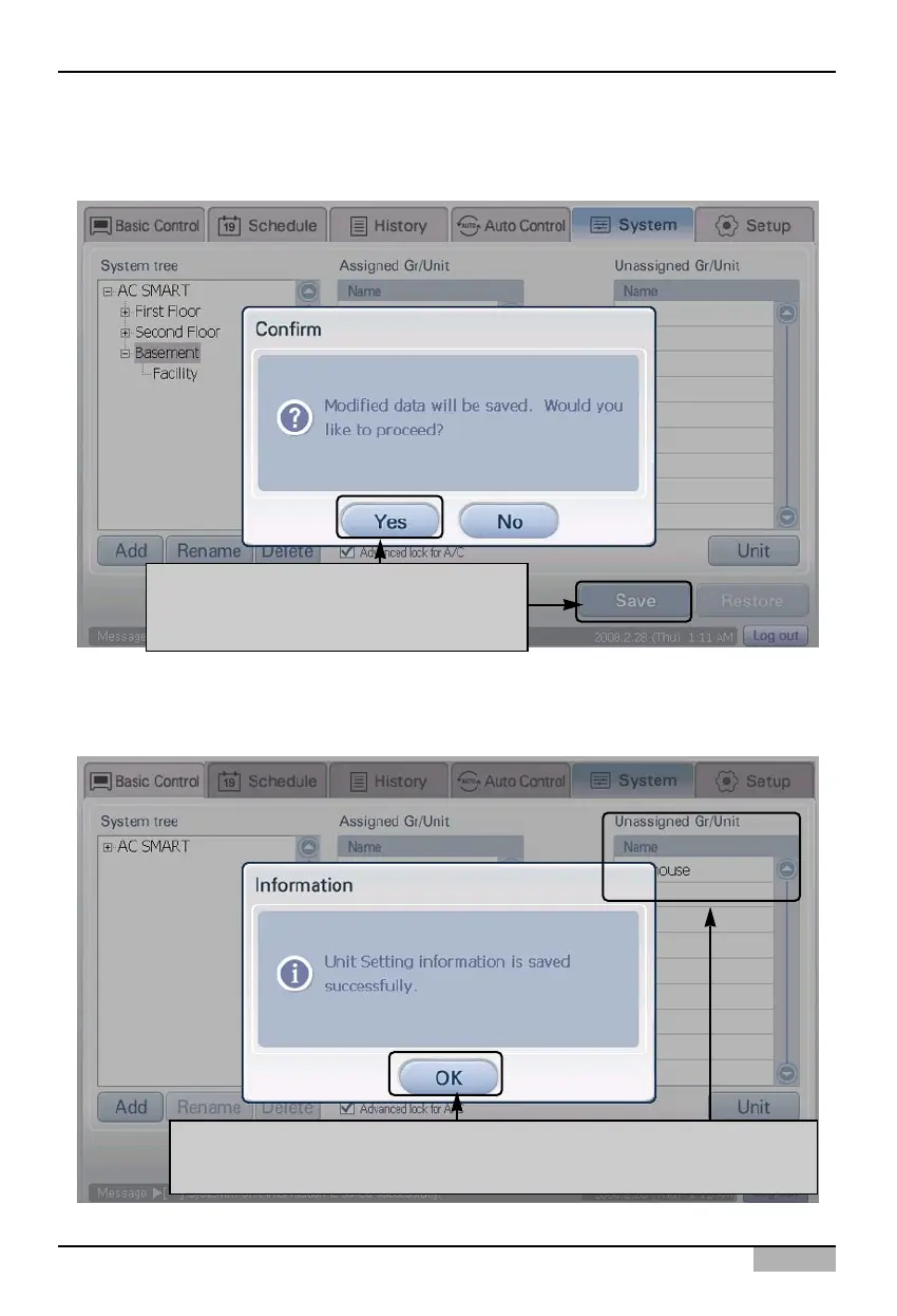 3. Click on the [Save] button to save the setting. Message confirming to save will be displayed on