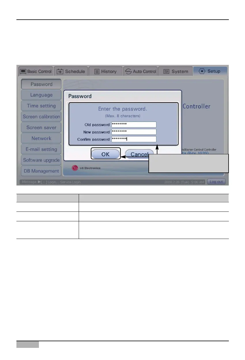 screen and the password is set. Refer to the following table for the detailed description about each