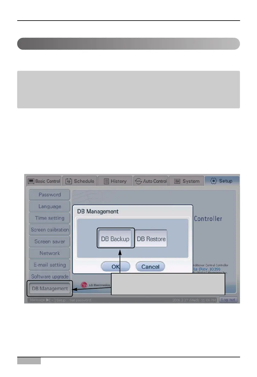 1. Select ‘Environment setting’ from the AC Smart menu. Press ‘DB management’ menu from the sub-