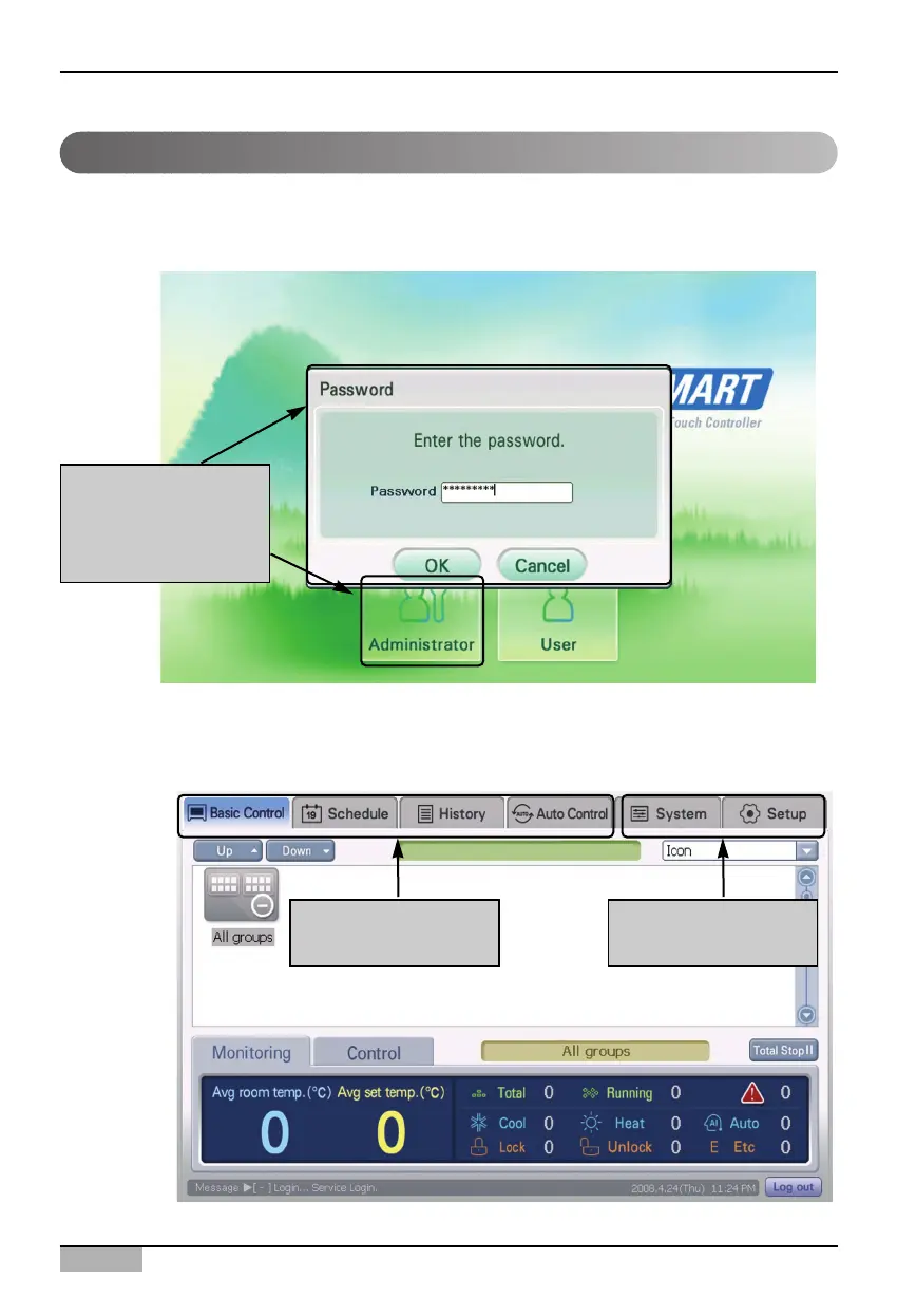 When you press ‘Administrator’ button, the password screen is displayed to enter the password. Enter