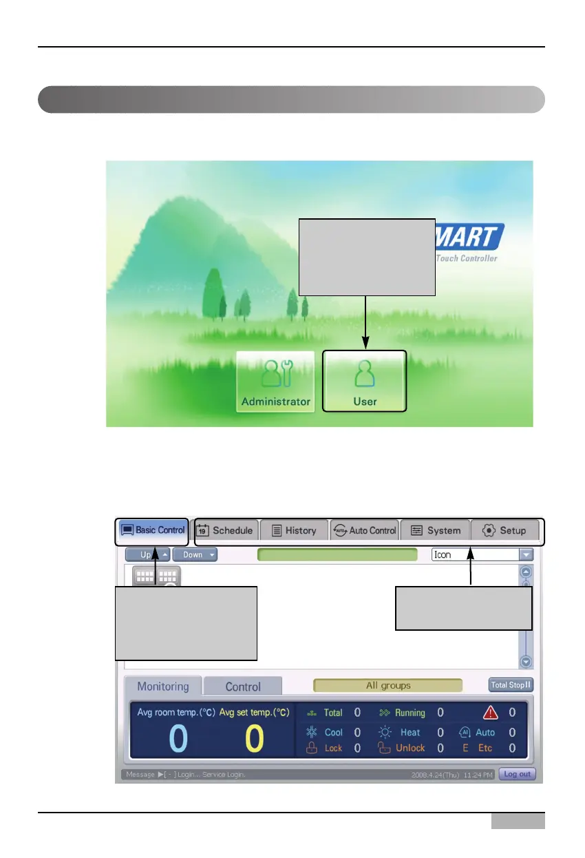 When logged into the AC Smart, only the functions of the ‘Control/Monitoring’ menu can be used and