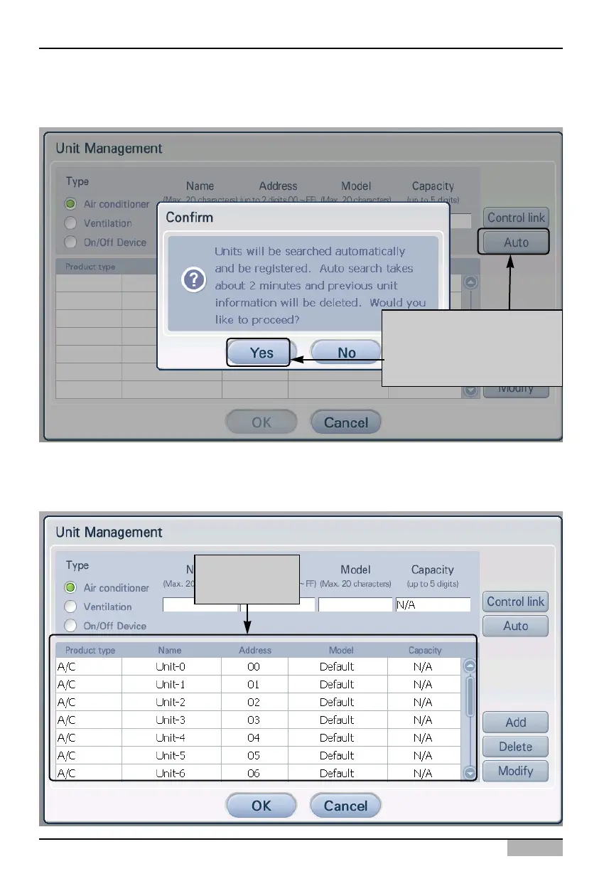 ‘Confirm’ screen to confirm the automatic unit setting is displayed, press [Yes] button.