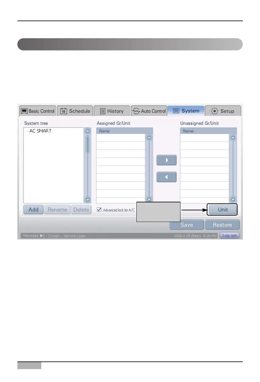 1. Select System setting menu from the AC Smart menu. When it is selected, the following screen is