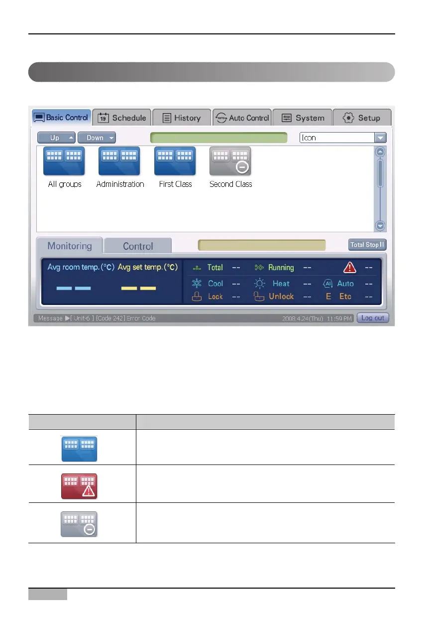 the status of the current group. The status description of the zone by color is described as follows.