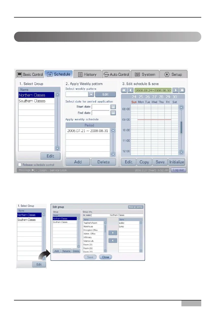 schedule main screen, you can check the schedule applied to the specific schedule group. Also by