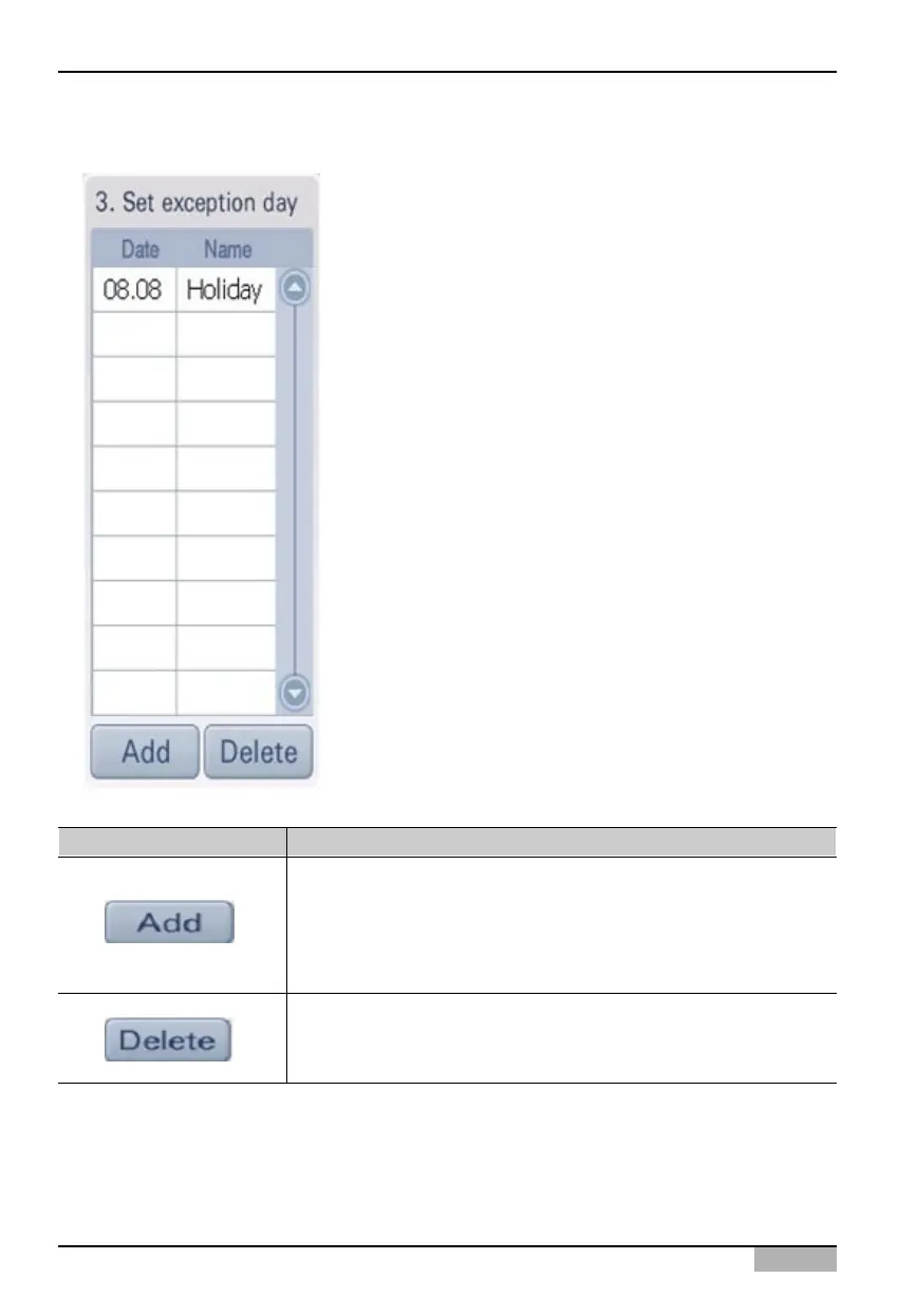 press [Add] button, ‘Add the exceptional date’ screen is displayed.