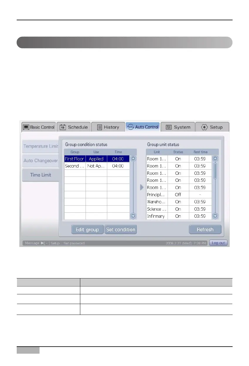 operation time of indoor unit, ventilator and On/Off device. For example, when a student leaves the air