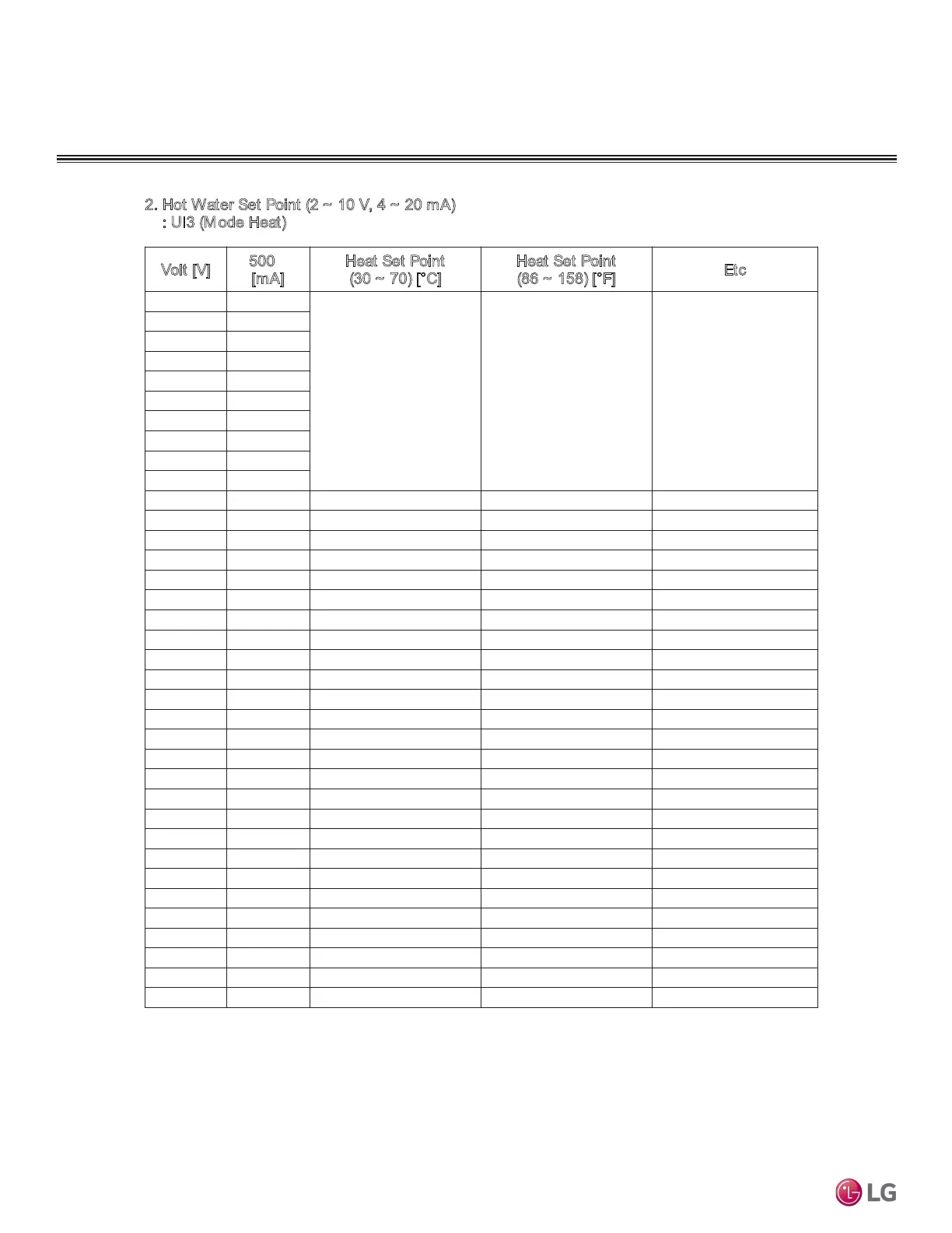 2. Hot Water Set Point (2 ~ 10 V, 4 ~ 20 mA)