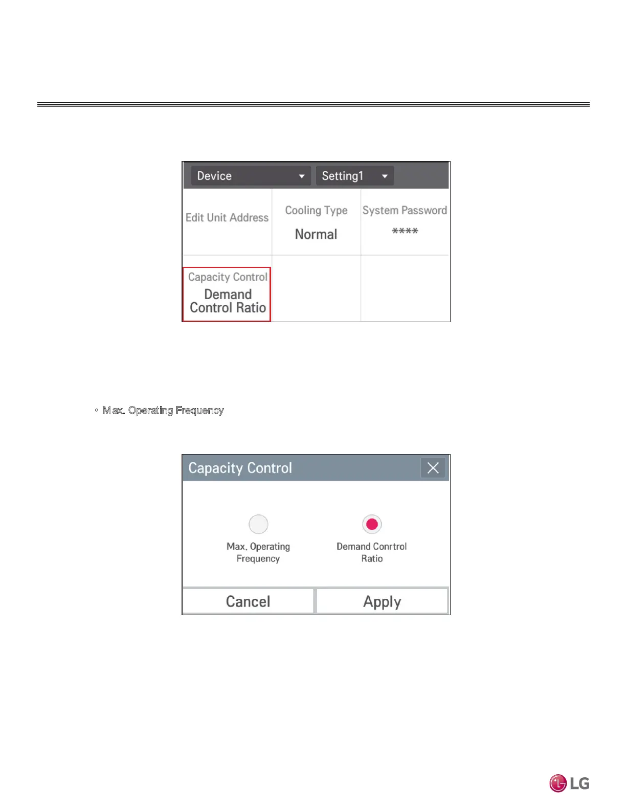 capacity control and click the Apply button. If you press the cancel, it keeps the previous settings.