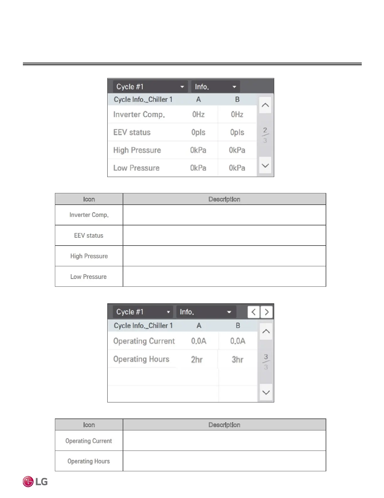 Show the operation current value of operation compressor.