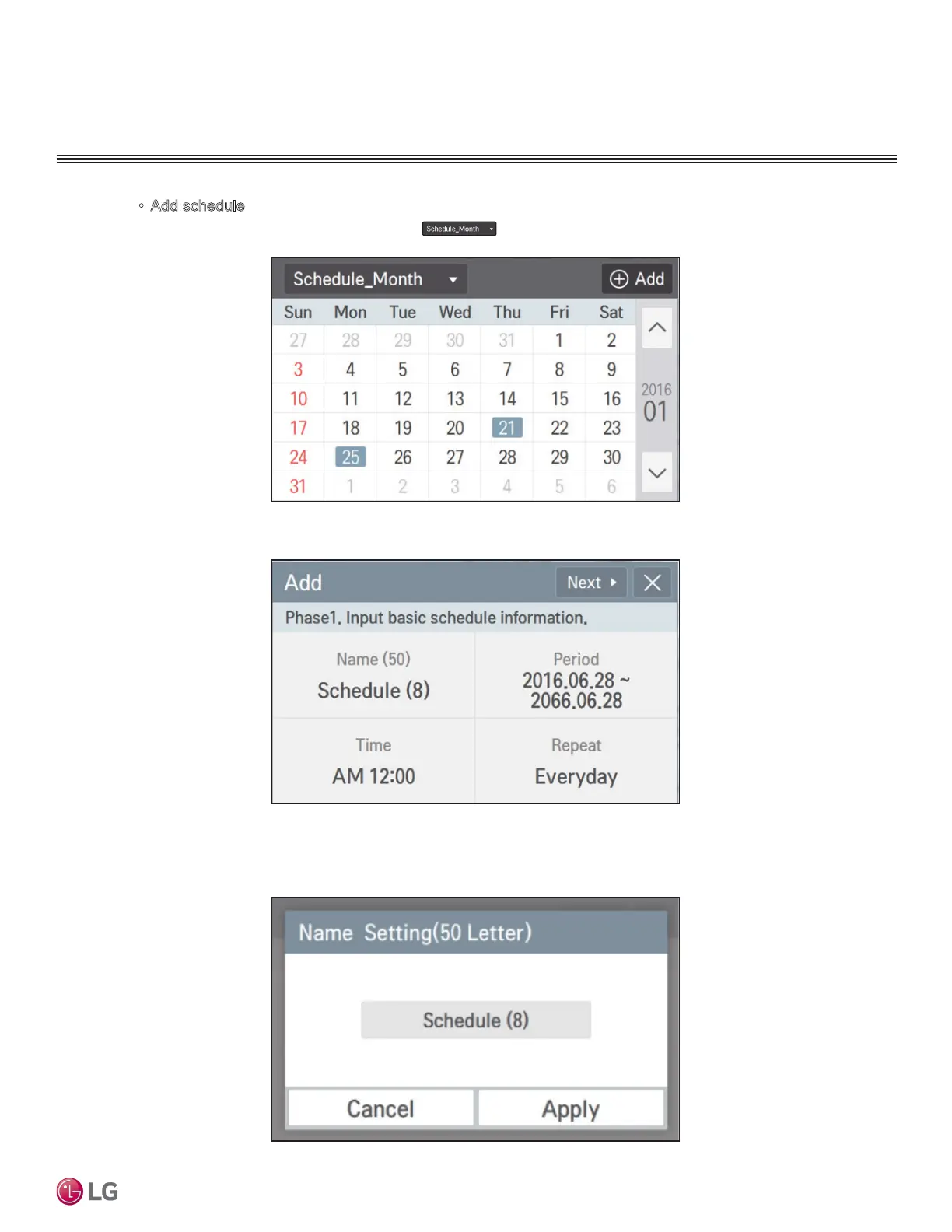 ① When you press the name area, a popup window to input the schedule name is displayed.
