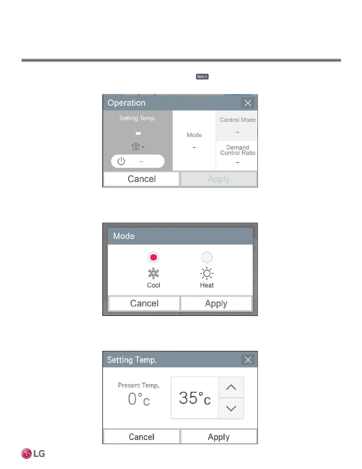 operation mode to use the schedule operation, and press Apply button. If Cancel is pressed,