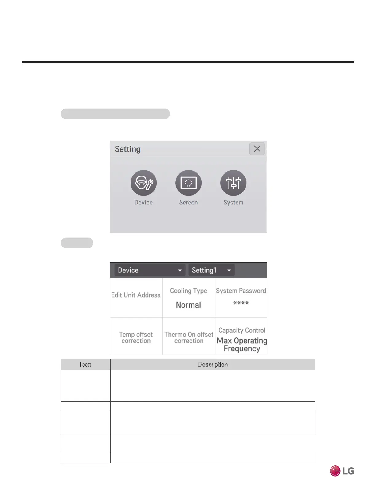In Home screen, if you press Setting button, after password input, it enters Setting screen, and