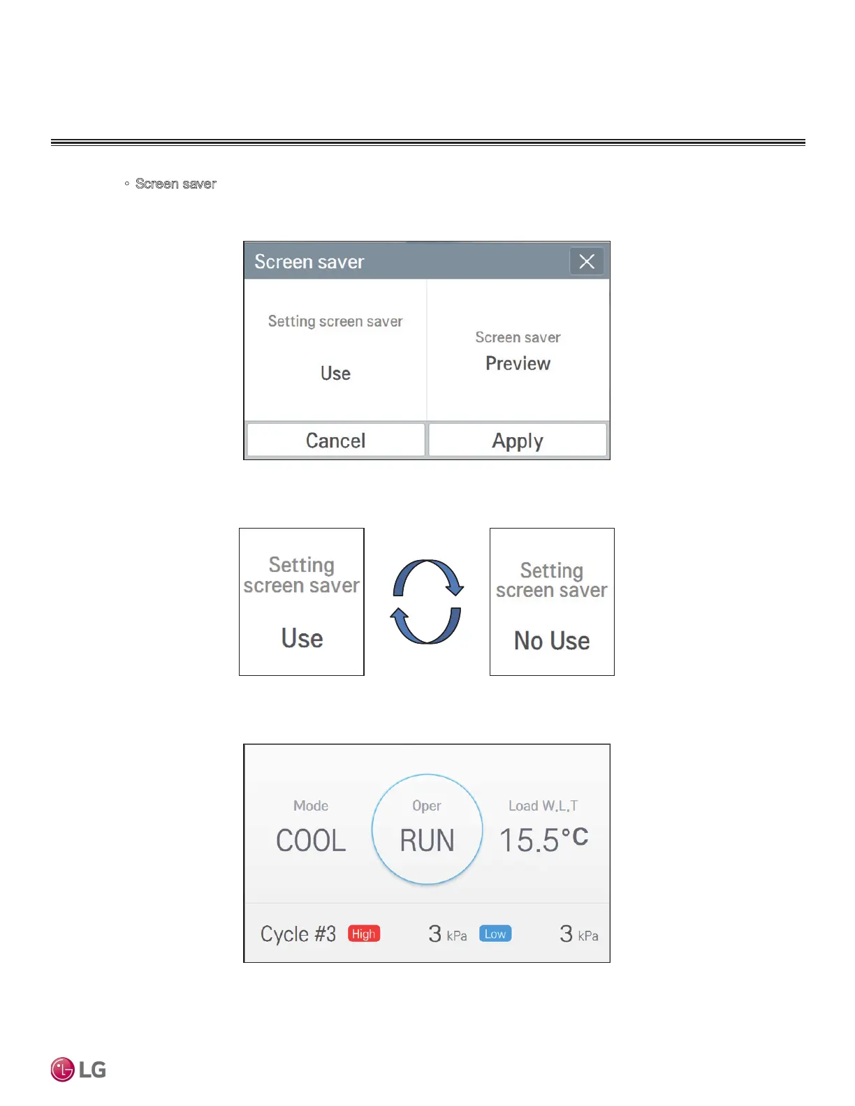 When whether to use the screen saver is selected as Use, the screen saver preview is acti-