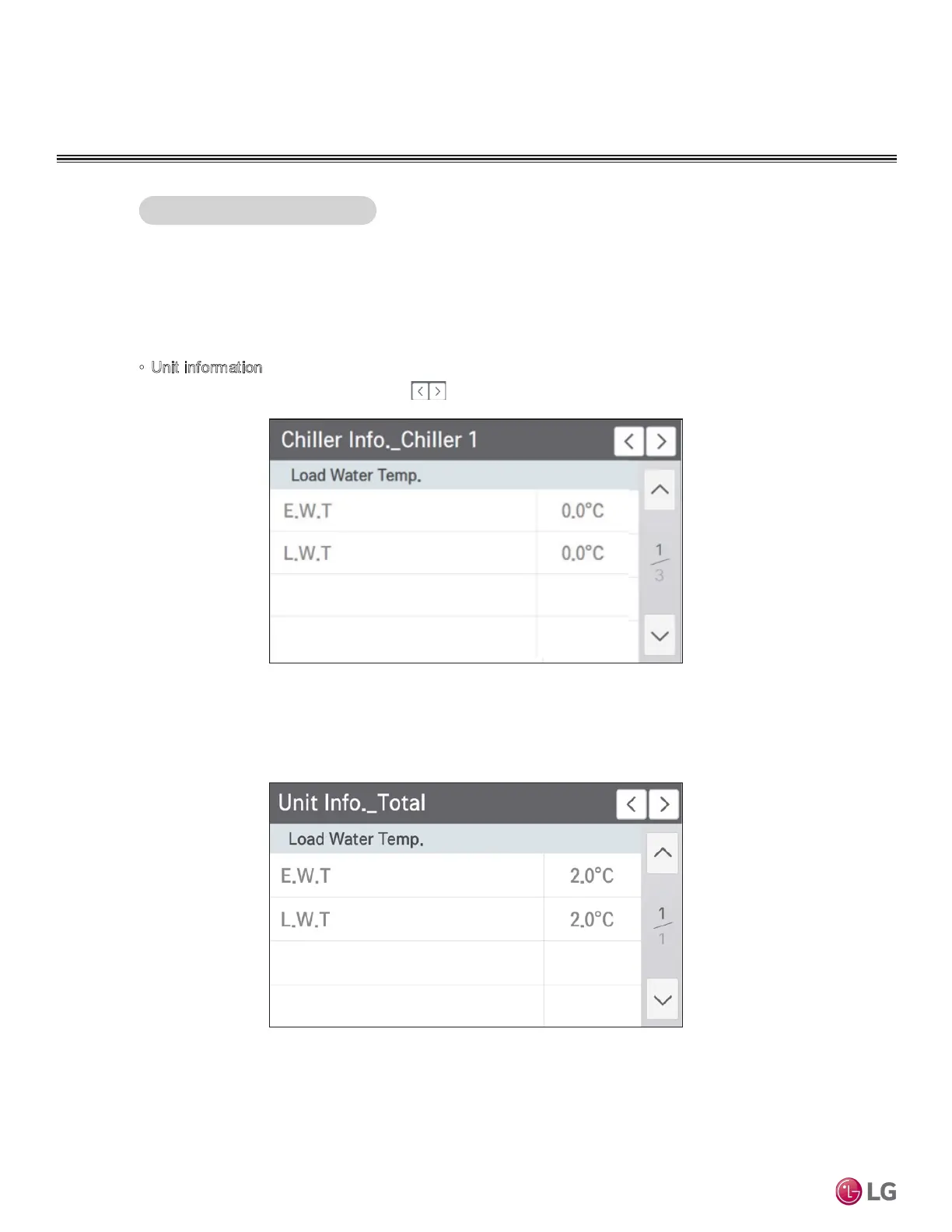 If you press left/right direction button , you can check each interfaced chiller information.