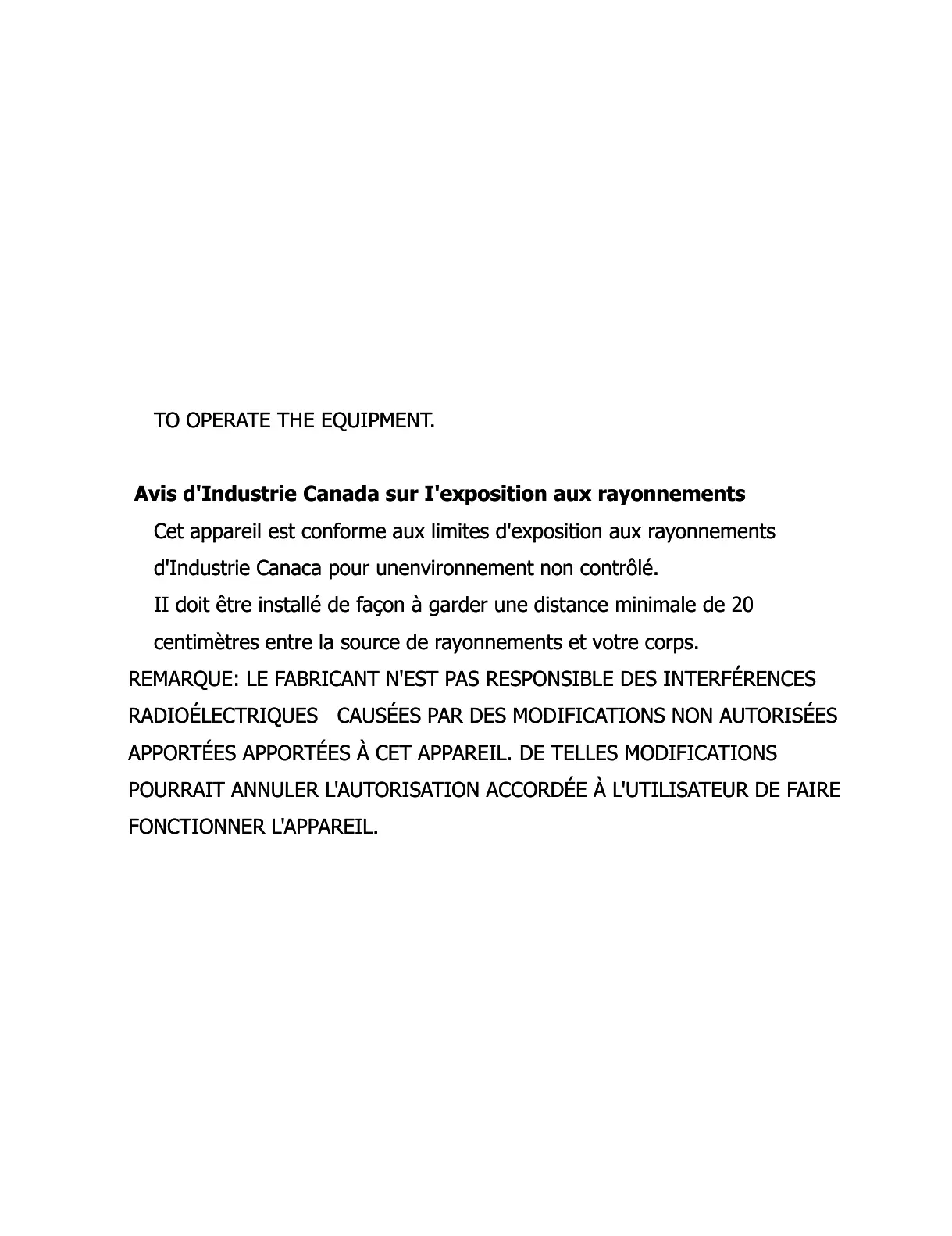 Avis d'Industrie Canada sur I'exposition aux rayonnementsAvis d'Industrie Canada sur I'exposition aux rayonnements