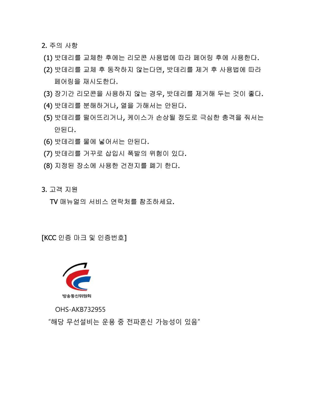 (1) (1) 밧데리를밧데리를 교체한교체한 후에는후에는 리모콘리모콘 사용법에사용법에 따라따라 페어링페어링 후에후에 사용한다사용한다..
