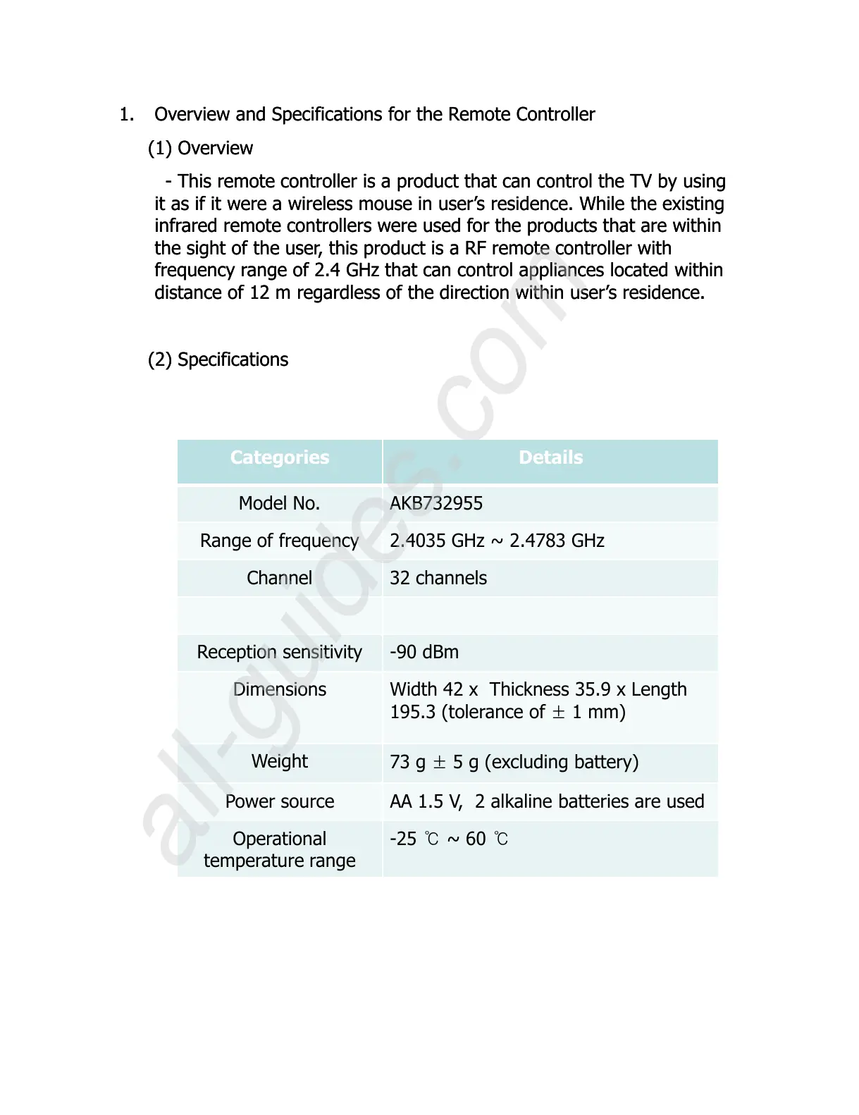 1.1. Overview and Specifications for the Remote ControllerOverview and Specifications for the Remote Controller
