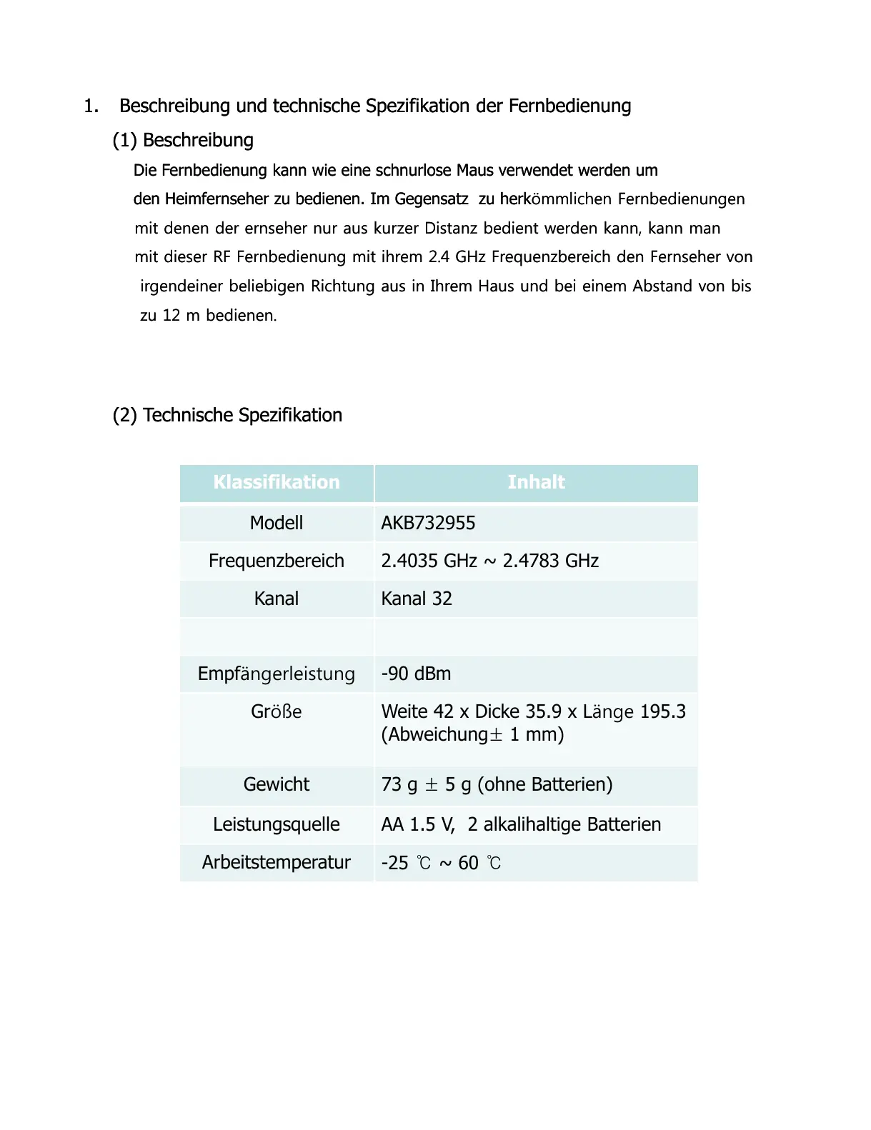 1.1. BeschreibungBeschreibung und und technischetechnische SpezifikationSpezifikation derder FernbedienungFernbedienung
