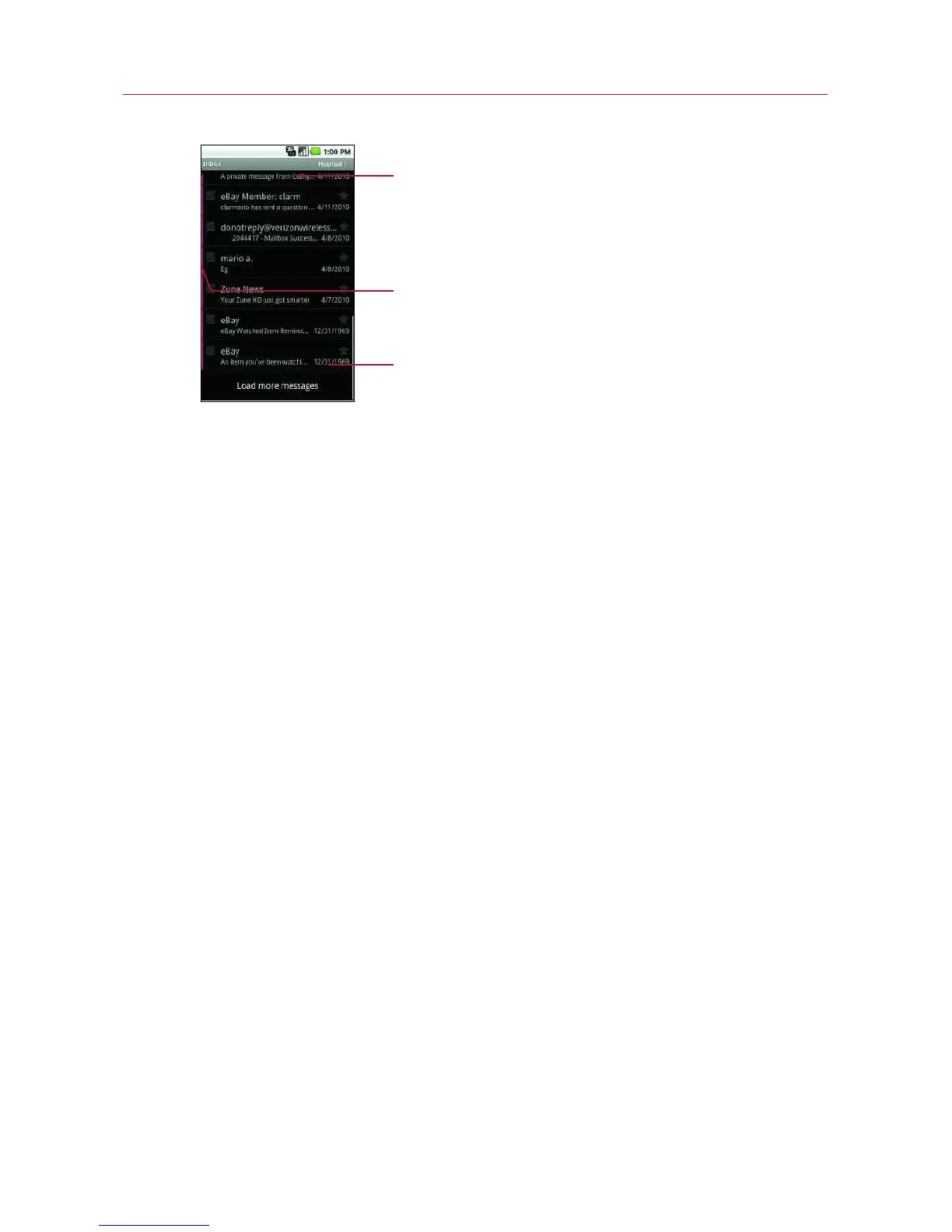 phone. To download more (earlier) email messages, touch Load