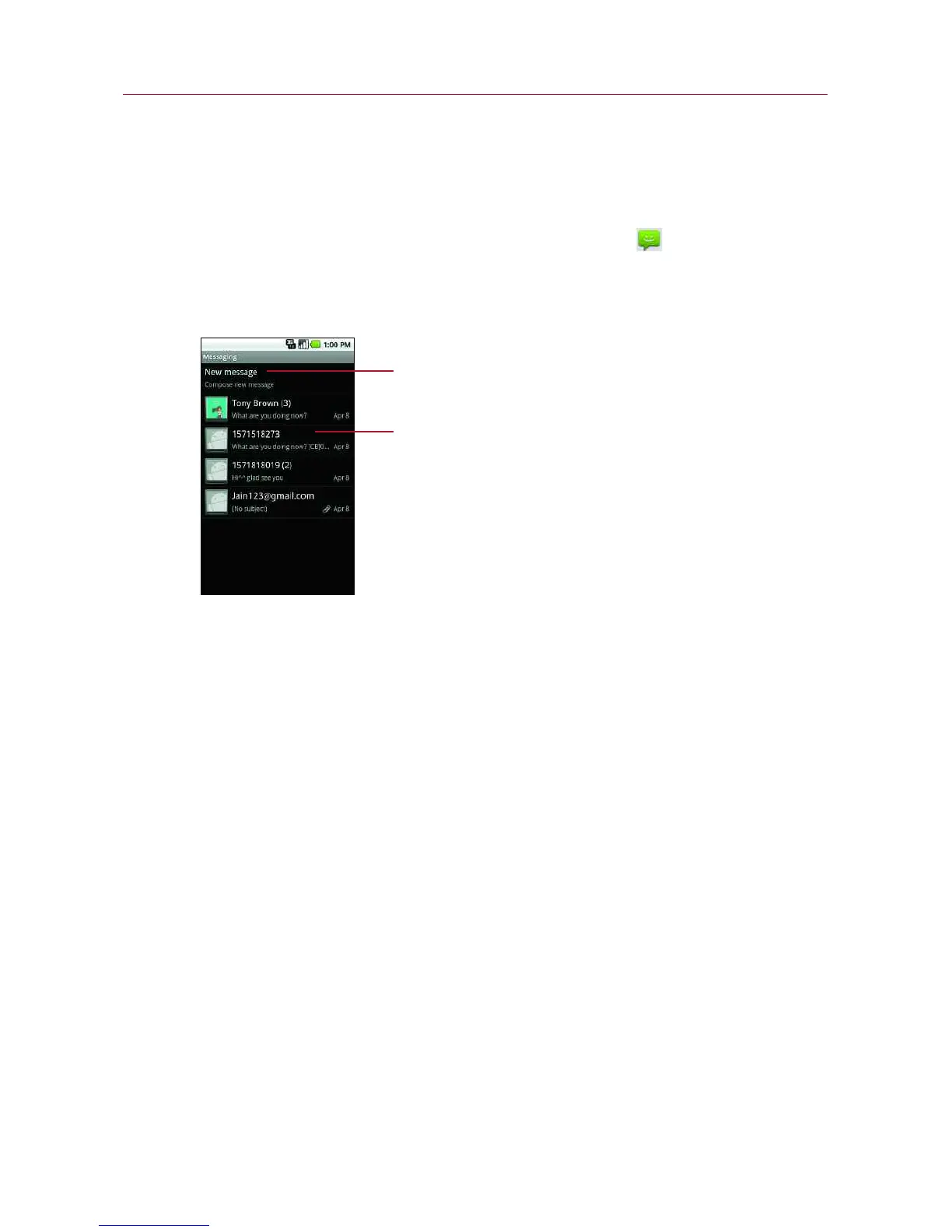 Touch to open an ongoing message thread.