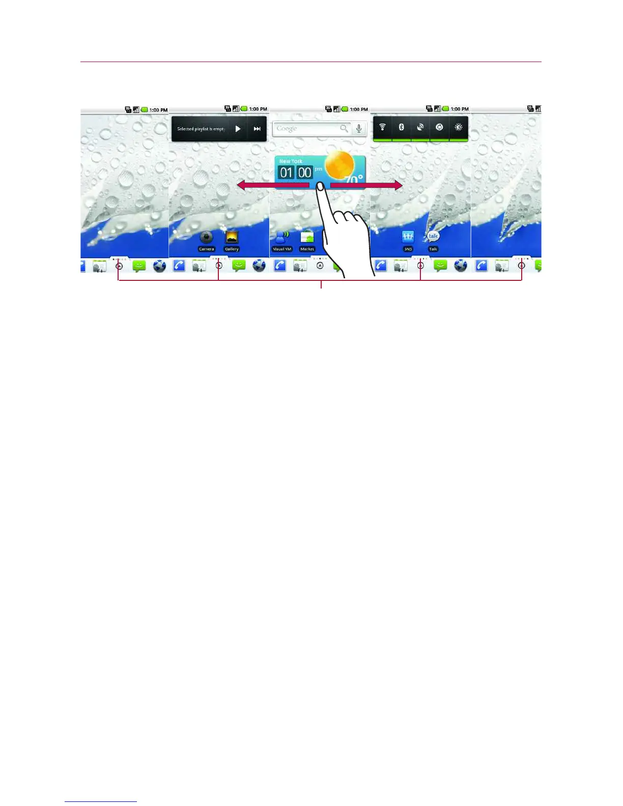 A solid dot on the Launch quick key indicates which Home screen pane you are viewing.
